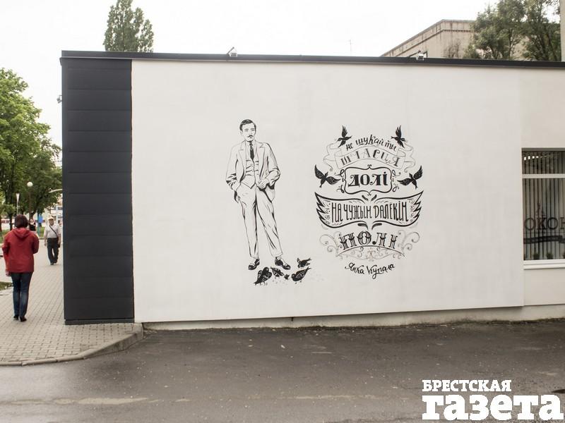 Портрет и цитата знаменитого белорусского поэта появились на улице, названной в его честь. Это второй стрит-арт в рамках проекта «Вулічные вершы» художницы Анны Яцкевич. Первым был изображен Максим Богданович.