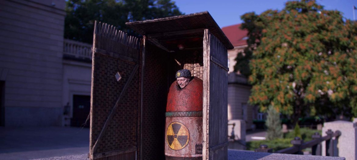 Как рассказал BG.Media художник, идея скульптуры возникла, когда начали ходить слухи о том, что Россия собирается разместить ядерное оружие на территории Беларуси.
