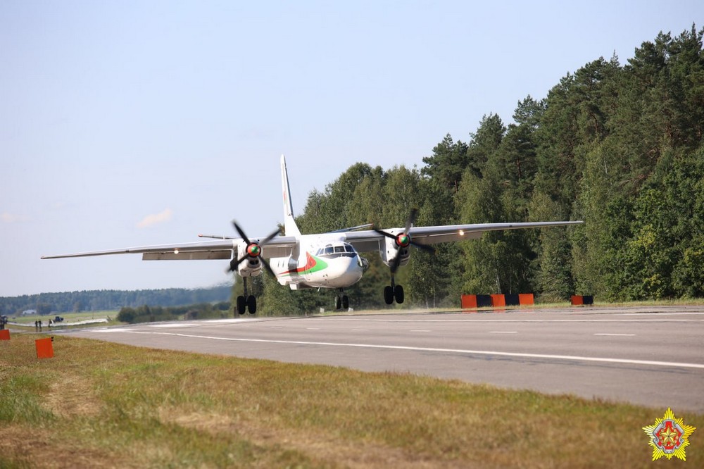 Самолеты Су-25, Су-30, Как-130 и Ан-26 успешно приземлились на автомобильную трассу М-1 Минск — Брест с последующей их подготовкой к повторному взлету.