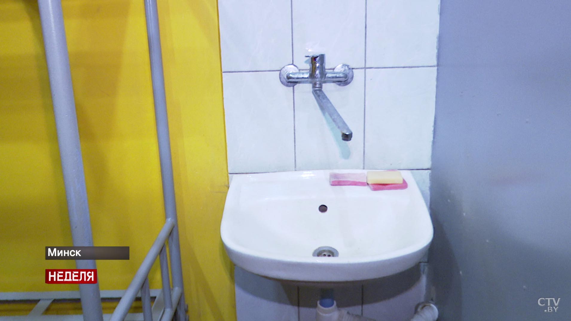 — Мы видим здесь кровати, наличие обогревателя (в зимнее время он работает), наличие крана с горячей и холодной водой. Мы видим санитарный узел, что нет необходимости куда-то выходить для справления надобностей естественных. Мы видим скамейки, тумбочки, где можно хранить свои личные вещи. Это тот минимальный набор требований, который предъявляется к подобного рода помещениям. Я еще раз говорю: мы не гостиница, мы место, где люди отбывают наказание определенное. Постельные принадлежности мы видим. Конечно, это все при приеме лиц дополняется средствами личной гигиены, постельным бельем. Допускается наличие их личных вещей, в том числе постельных принадлежностей.