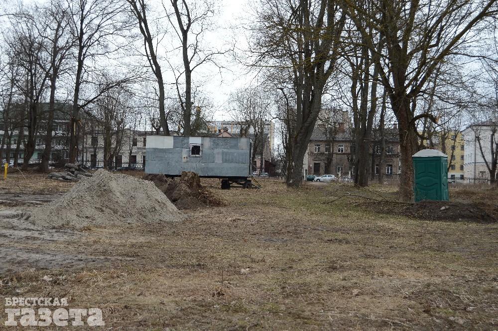 На территории сада установили строительный фургончик и биотуалет. В выходные работники коммунальной службы города начали прокладывать пешеходные дорожки в старом Городском саду. Правда, днем 12 марта никого из рабочих корреспондент «БГ» там не обнаружила.
