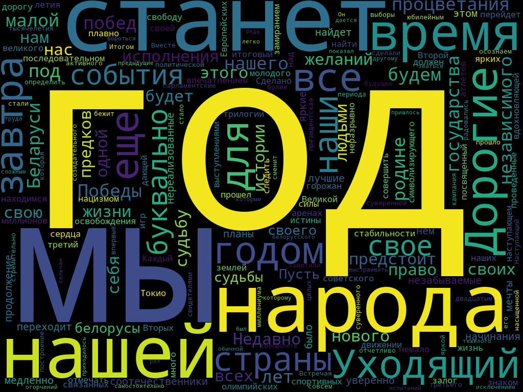 Президент Беларуси Александр Лукашенко, глава Российской Федерации Владимир Путин и президент Украины Владимир Зеленский под бой курантов поздравил граждан и гостей страны с Новым 2020 годом. С помощью сервиса «Облако слов» мы посмотрели, какие слова чаще всего звучали в их речах.
