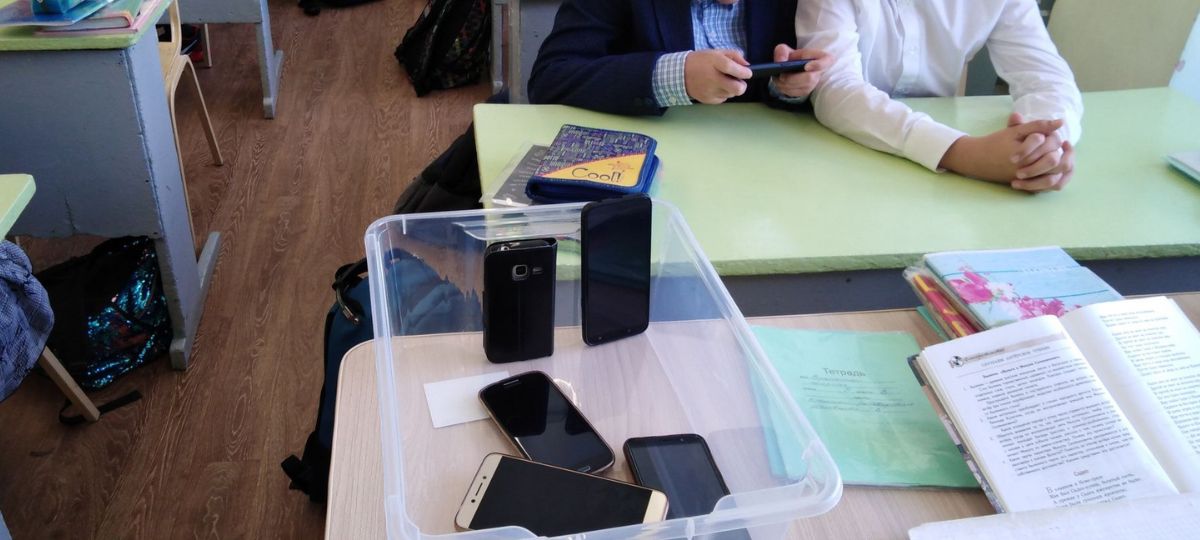 «А почему классный руководитель не приносит ящик с телефонами? В норм школах организовали этот процесс именно так: утром классный руководитель собирает и относит в шкаф, на последнем уроке забирает и приносит в класс».