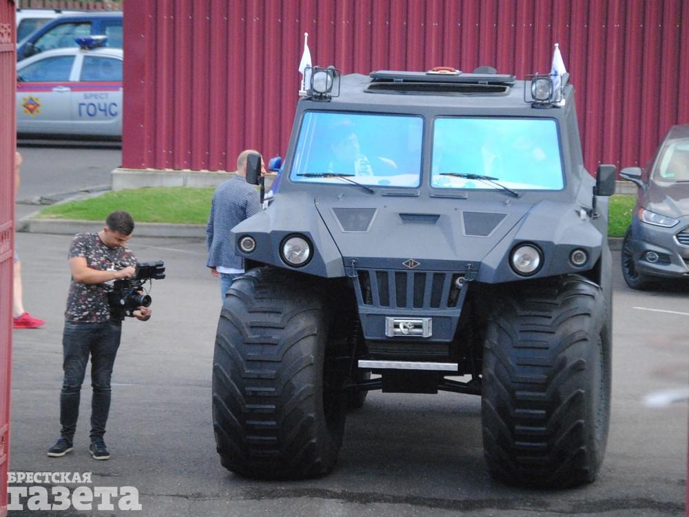 Легенда мирового футбола Диего Марадона посетил Брест впервые. И если от аэропорта Брест до гостиницы «Эрмитаж» он доехал на голубом «Мерседесе», то на стадион СК «Брестский» он въехал на машине, которую некоторые пользователи в соцсетях успели назвать и танком, и броневиком.