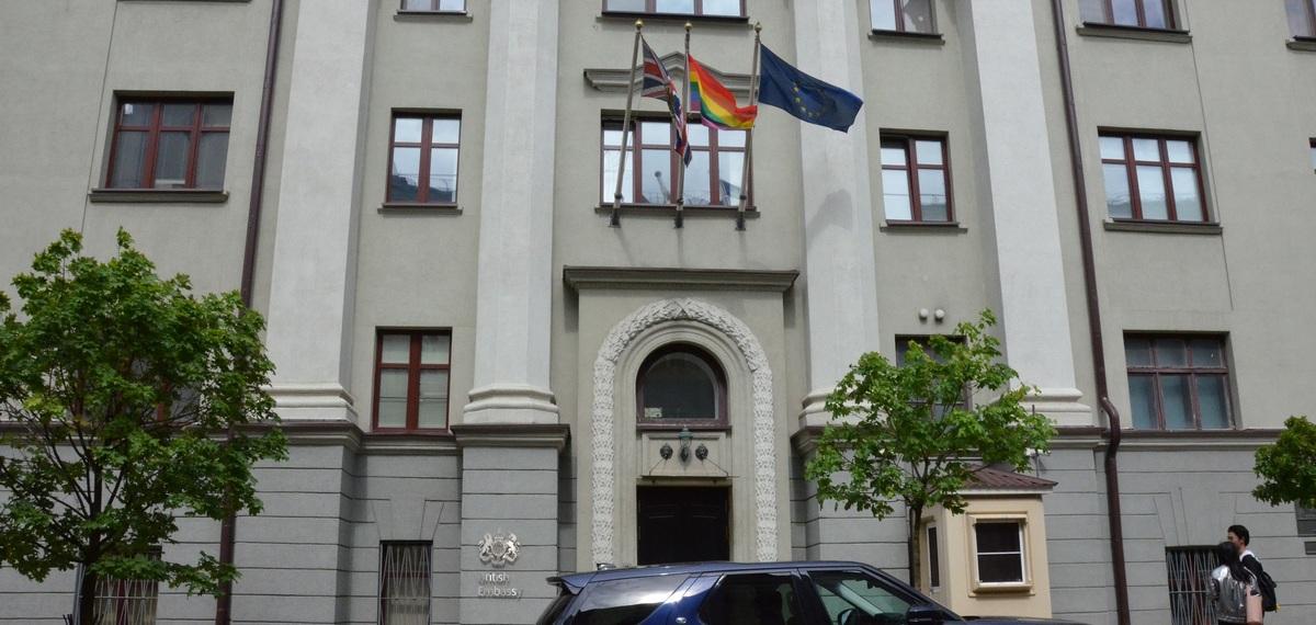 В Международный день борьбы с гомофобией, трансфобией и бифобией 17 мая на здании посольства Великобритании в Минске появился ЛГБТ-флаг. Такой шаг посол Великобритании в Беларуси Фионна Гибб объяснила содействием продвижению прав ЛГБТ-сообщества и обращением внимания общественности на ЛГБТ-людей и дискриминацию, с которой они сталкиваются.