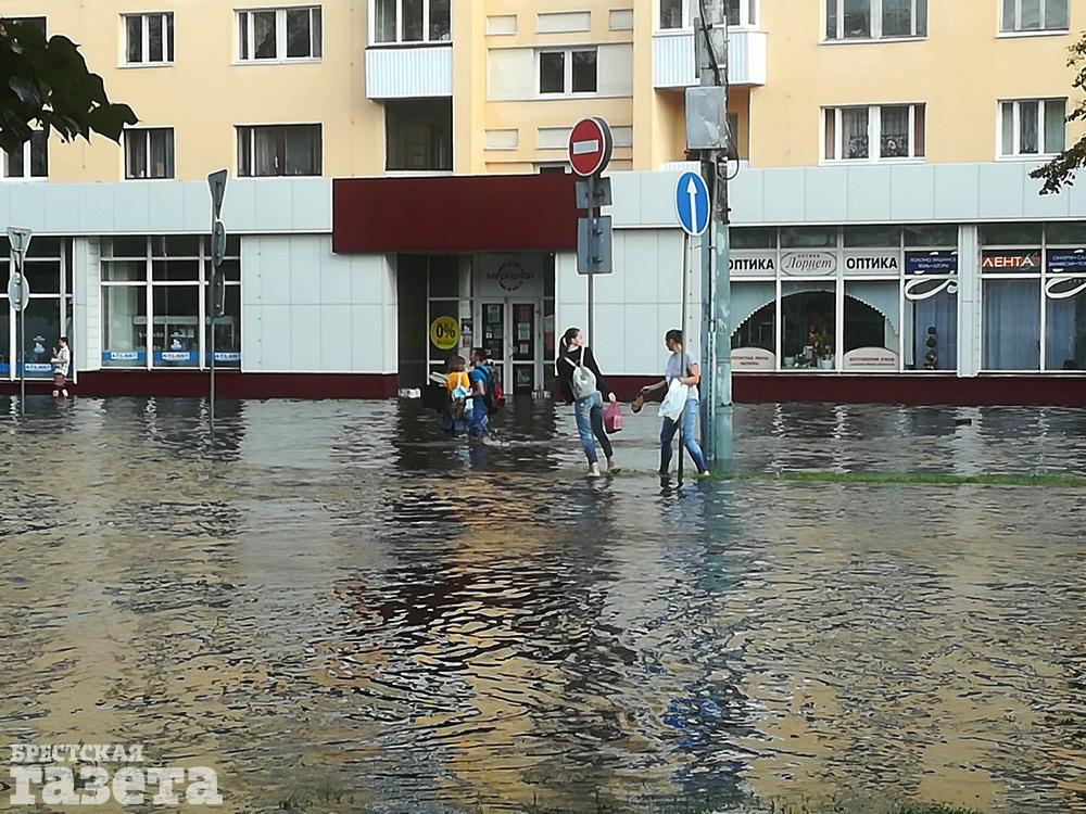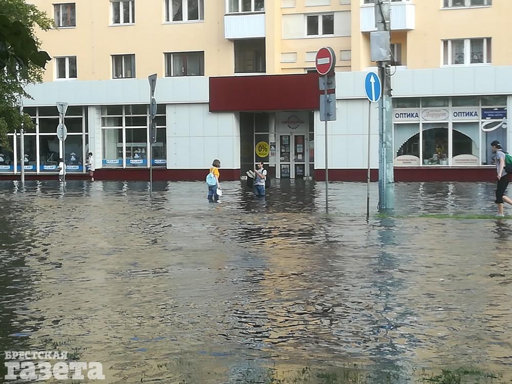 Подтопленными оказались улицы Гоголя, Киевская, Красногвардейская, Московская, Янки Купалы, Варшавское шоссе, проспект Машерова, бульвары Шевченко и Космонавтов и прилегающие улицы.
