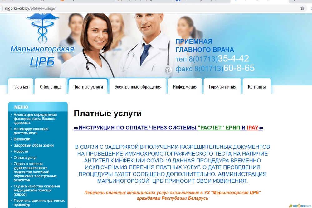 Одна из больниц Беларуси сообщила, что уже делает платные тесты на антитела к коронавирусу, а потом убрала эту услугу
