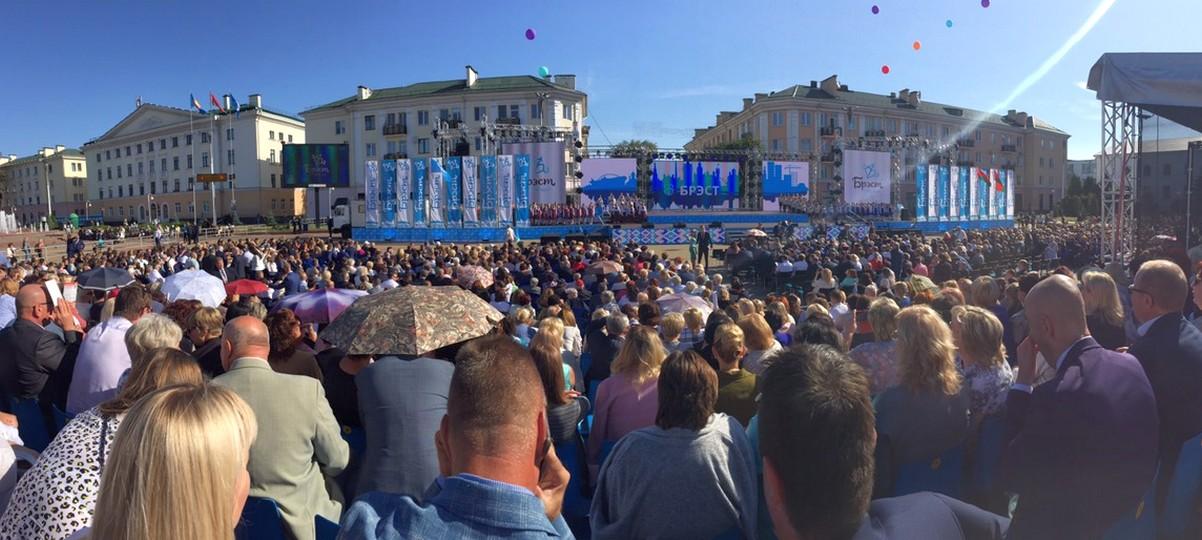 В пятницу 6 сентября Брест официально начал отмечать 1000-летний юбилей — в 11.10 на площади Ленина началось торжественно-праздничное представление. На нем присутствует и президент Беларуси Александр Лукашенко, который приехал в город с рабочим визитом. Чуть ранее Лукашенко уже перерезал ленточку второй очереди Западного обхода.