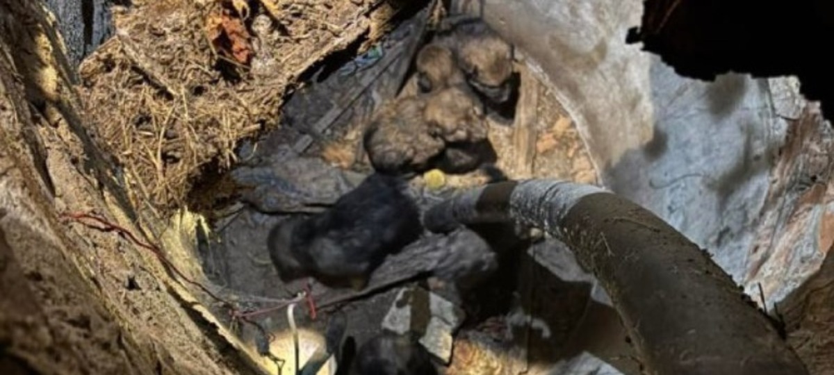 Как щенки там оказались, не уточняется, но, вероятно, они исследовали территорию и не заметили опасности, а в итоге оказались в ловушке.