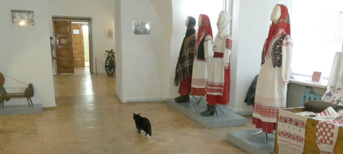Кот Барсик в музее беларуского Полесья в Пинске. Скриншот: youtube.com/@TRK_Brest