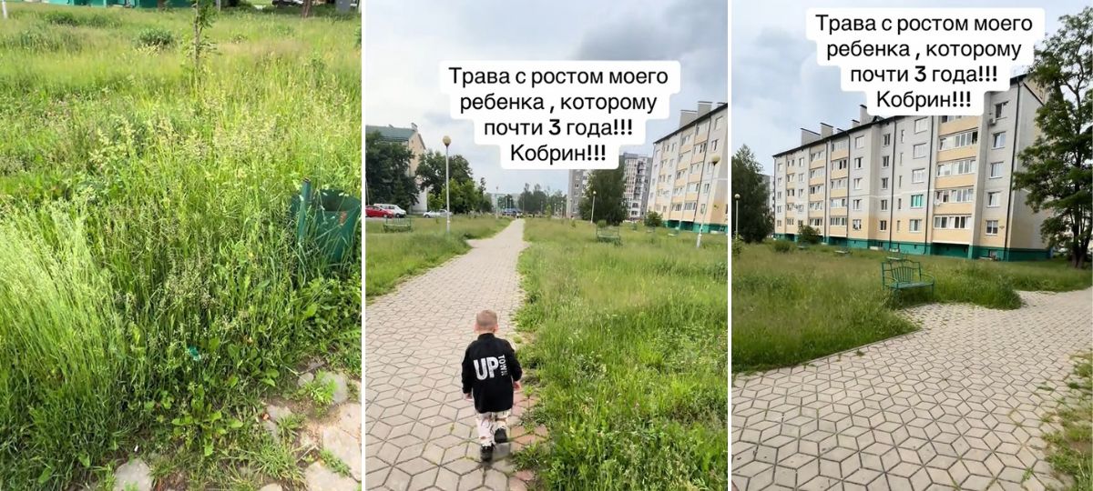 Жительница Кобрина сняла на видео в TikTok аллею в городе, где не покошена трава. По ее словам, она в рост ее ребенка. Местные жители в комментариях пишут, что так во всем Кобрине, а также иронизируют над новыми требованиями чиновников к владельцам домов, земельных участков и авто. Особенно к правилу, что трава высотой более 20 см должна быть скошена.