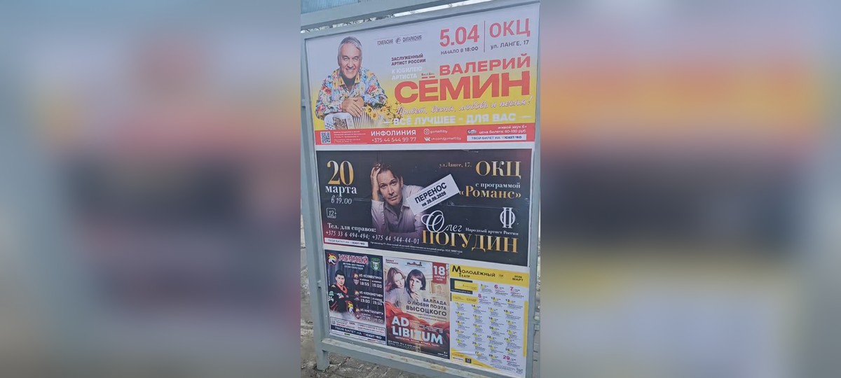 На афішы відаць аб’явы канцэртаў некалькіх расейскіх выканаўцаў: Алега Пагудзіна і Валерыя Сёміна. Відэа хутка сабрала шмат каментароў (759 па стане на 06.03.2026), а меркаванні карыстальнікаў падзяліліся.