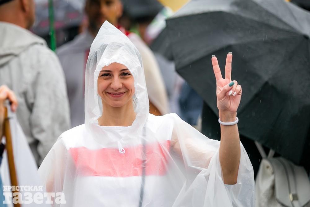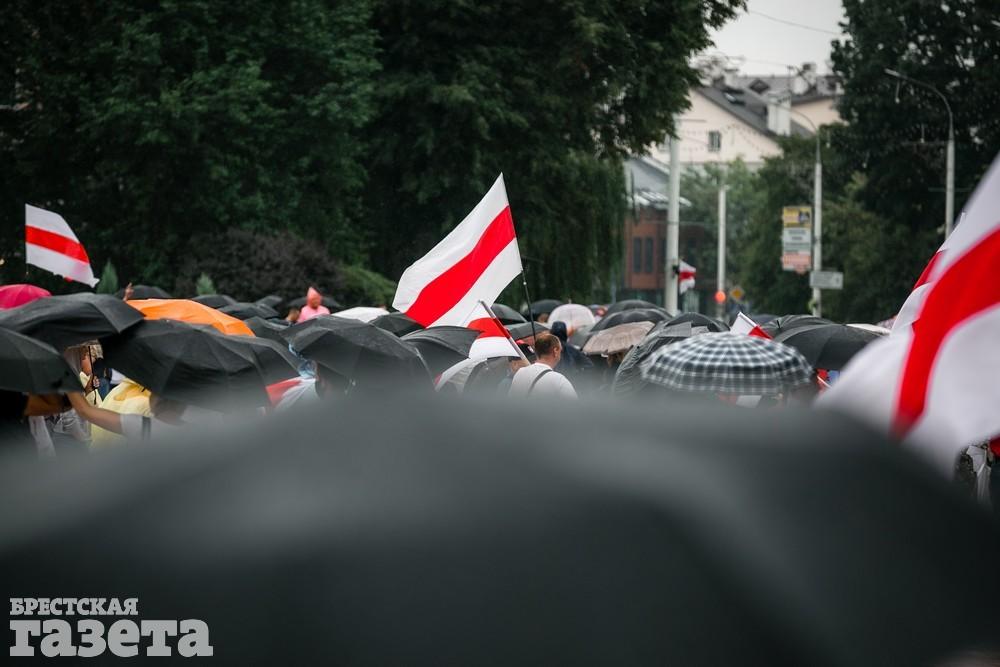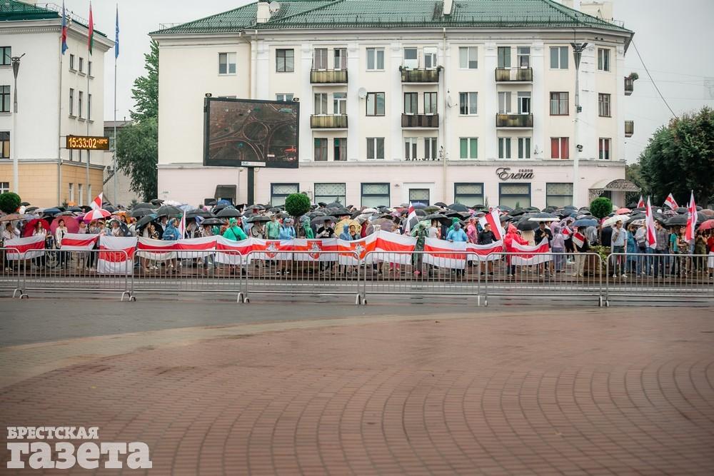 В Бресте эпицентром мирной акции протеста стала площадь Ленина. Собравшиеся люди с цветами, шариками, плакатами и бело-красно-белыми флагами периодически скандировали «Жыве Беларусь!», «Верым! Можам! Пераможам!» Проезжающие машины поддерживали их сигналами.