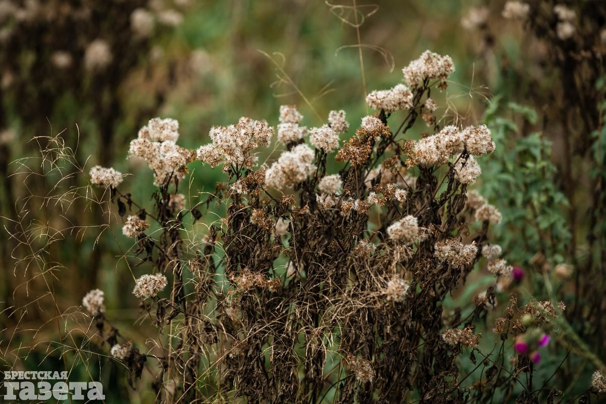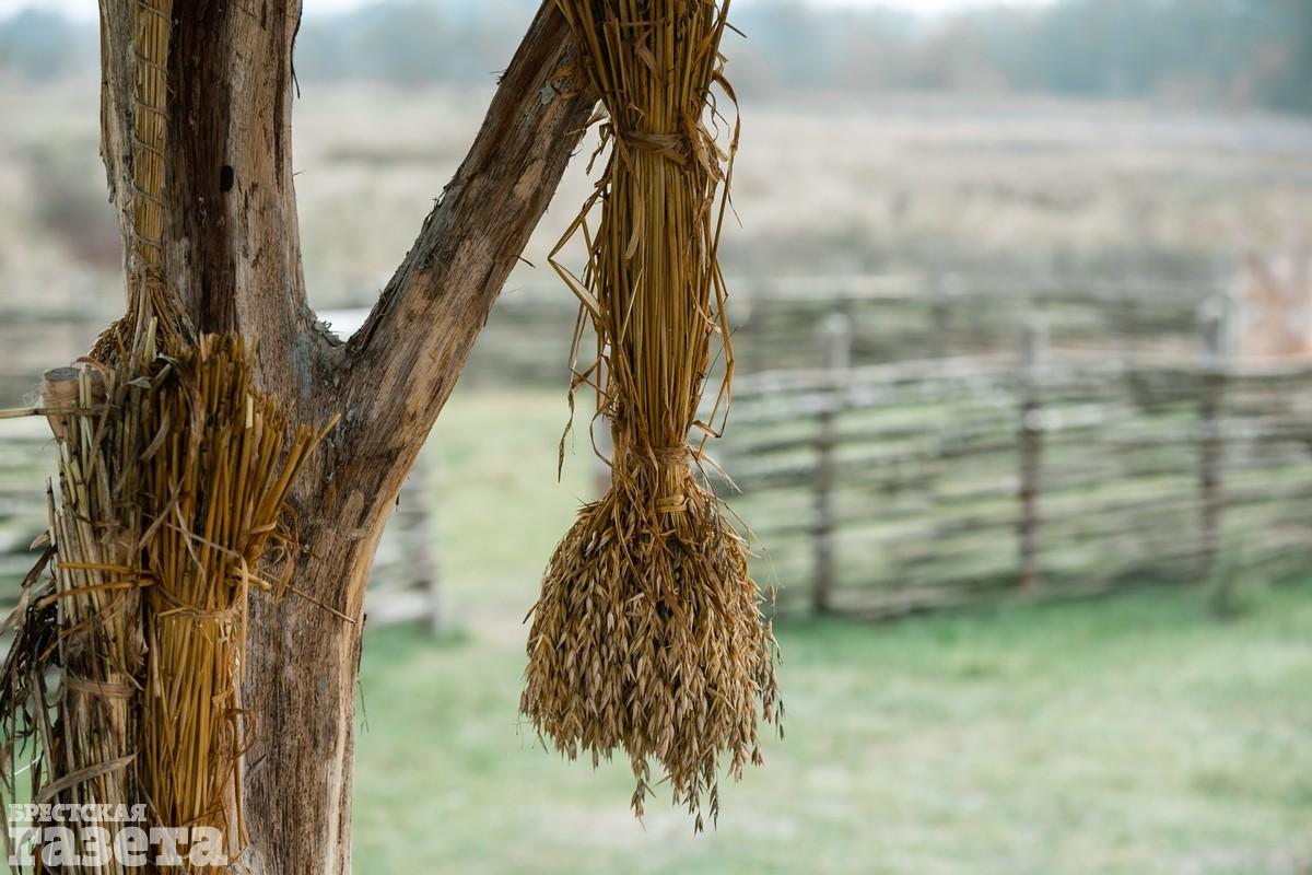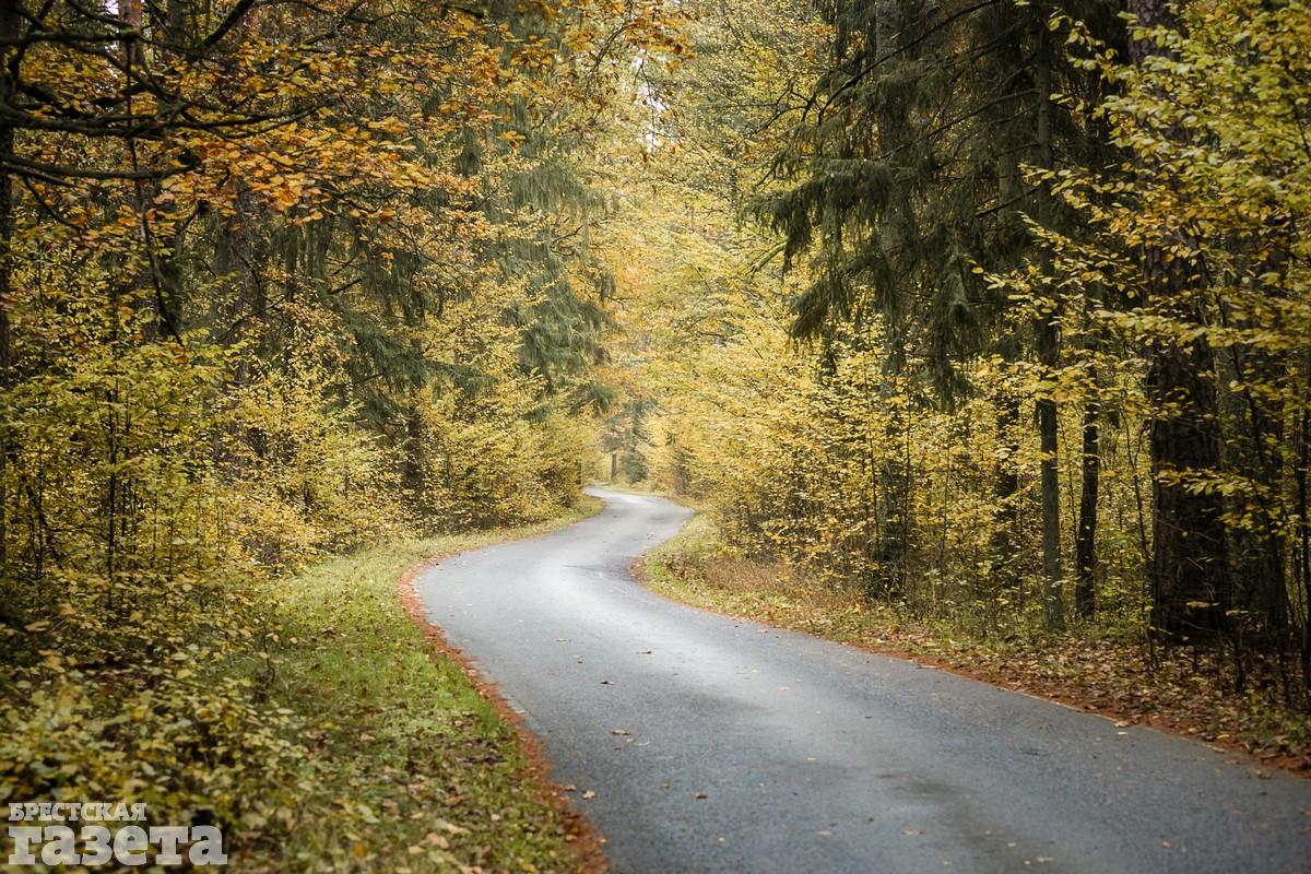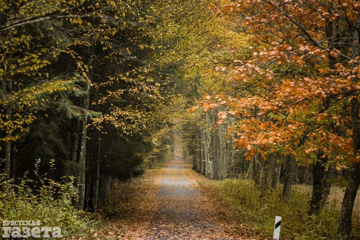 Дорога заняла около получаса, который мы потратили не зря. Природа Беларуси в конце октября радует яркими красками. Над спящими полями парят неутомимые хищники: канюки, пустельги, ястребы. Необыкновенно хороши румяные дубки, янтарные клены и золотые березы. Неожиданными фейерверками вспыхивают среди почерневших огородов кусты алых и фиолетовых георгин, бордовых хризантем, оранжево-огненных бархатцев. Из-за поредевших ветвей можно рассмотреть работы деревенских столяров — резные наличники на окнах и причудливо-сказочные беседки для колодцев.
