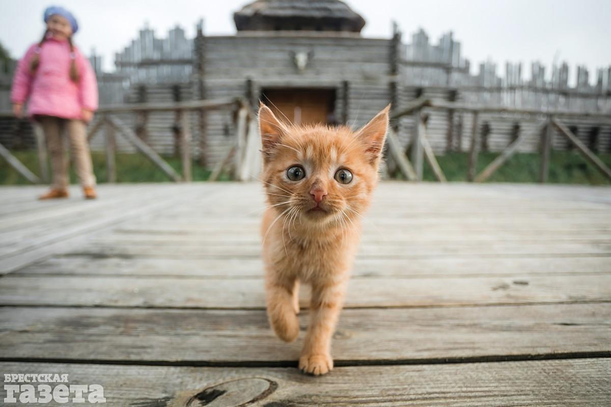 Нашим необычным берестейским провожатым стал непонятно откуда взявшийся рыжий котенок. Он весьма неоднозначно и громко дал понять, что желает продегустировать наши бутерброды, а потом бодро семенил за нами по тропинкам и участвовал в фотосессии. Уезжая, мы познакомились с его родственниками: трехцветной флегматичной мамой-кошкой и двумя сестрами. Оказалось, что пушистая команда состоит на иждивении у смотрителей музея.