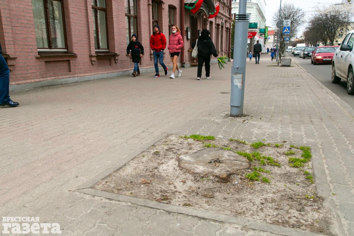 В центре Бреста таких «квадратов неМалевича» можно насчитать десятки, если не сотни. Только по улице Гоголя мы нашли 27 «немых упреков» коммунальникам или дорожным службам. А ведь до нашей «инспекции» здесь прошло мероприятие по посадке молодых деревьев.