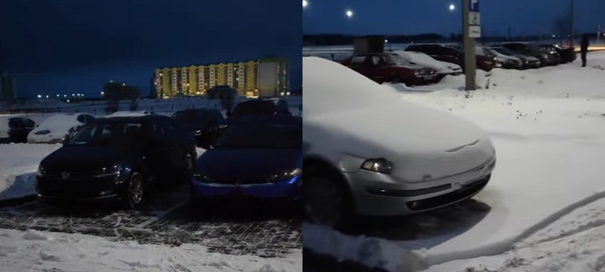 11.01.2026 08:00 Што адбылося з месцамі для паркінгу пасля асысткі снега. Скрыншот з відэа ў сацсетках. Источник фото