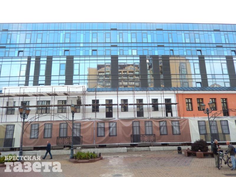 Недостроенная гостиница Marriott по ул. Советской в Бресте, несмотря на стеклянный верх, все же давит своей монументальностью