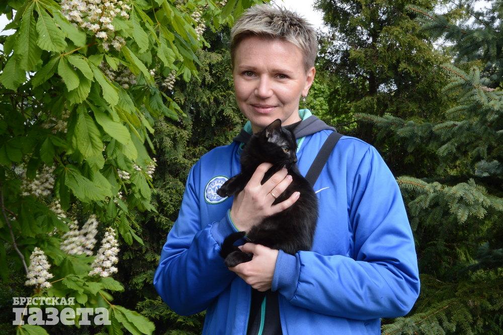 Юлия Нестеренко, олимпийская чемпионка в беге на 100 метров в Афинах-2004, и черный котенок: