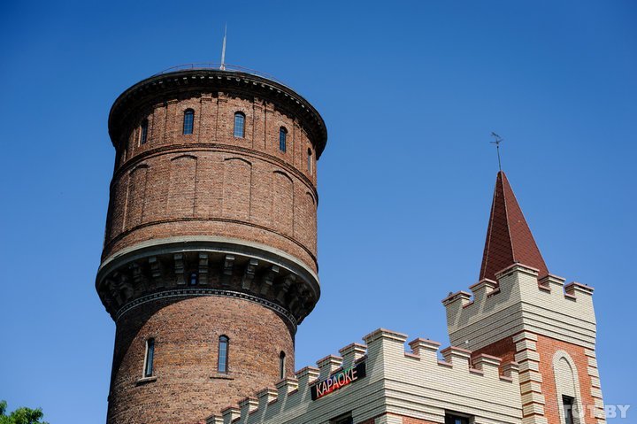 Здание бывшей водонапорной башни в Гомеле стоит в самом центре города. Ее построили в 1953 году. В частные руки она перешла уже в XXI веке. Теперь в башне ресторан. Называется он, как нетрудно догадаться, «Башня». Само заведение находится в трехэтажной пристройке, башня в ресторанной жизни мало задействована.