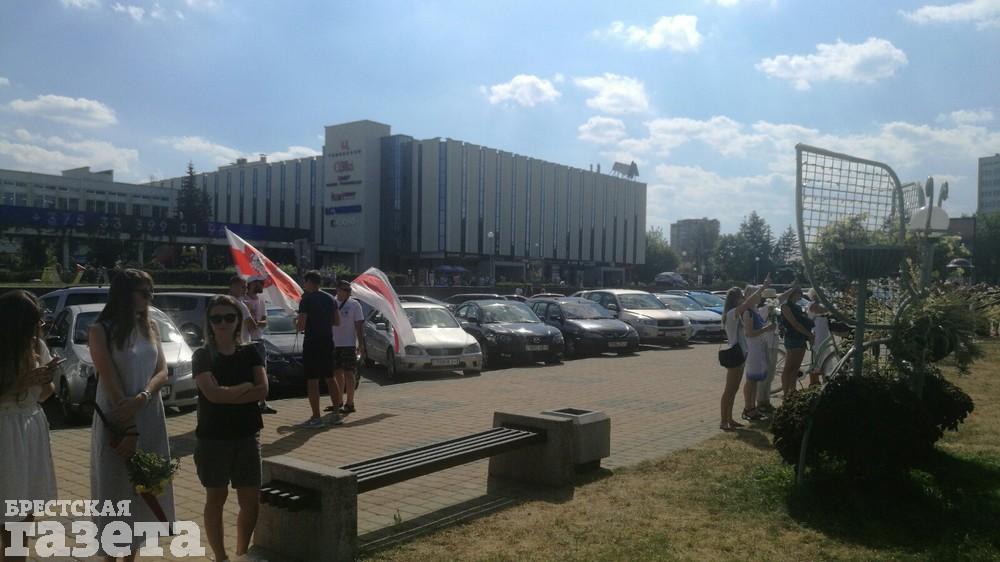 Жители Бреста днем субботы начали собираться возле ЦУМа на площади Машерова.