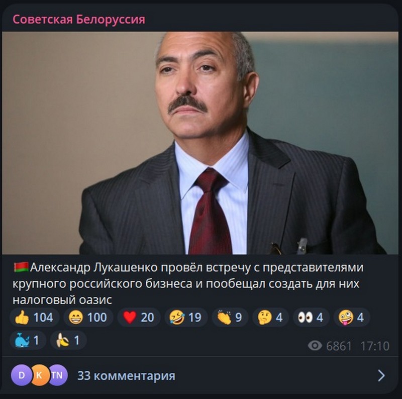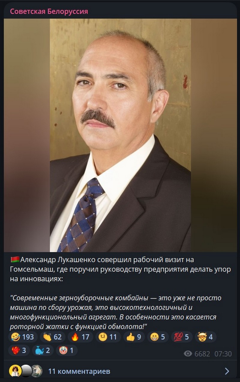 Телеграм-канал «Советская Белоруссия» вышел на новый уровень в шутках про Лукашенко, начав прикреплять к своим постам фото мужчины, который ну очень похож на политика. Мы выяснили, что это американский актер Мигель Сандовал. Интересно, знает ли он про существование Лукашенко?